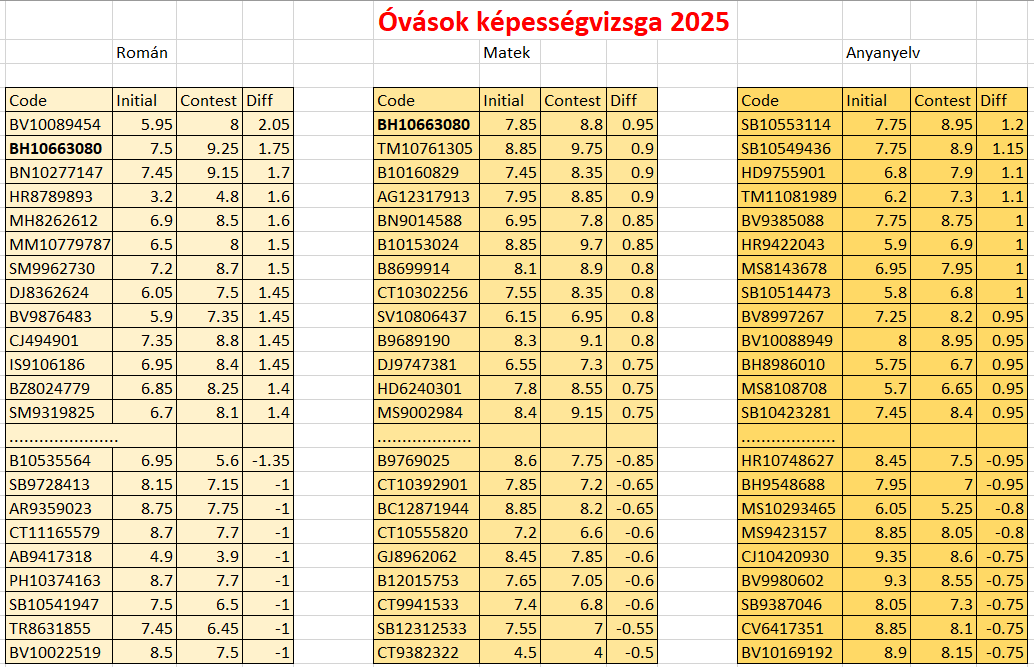 Óvások eredménye, képességvizsga 2025