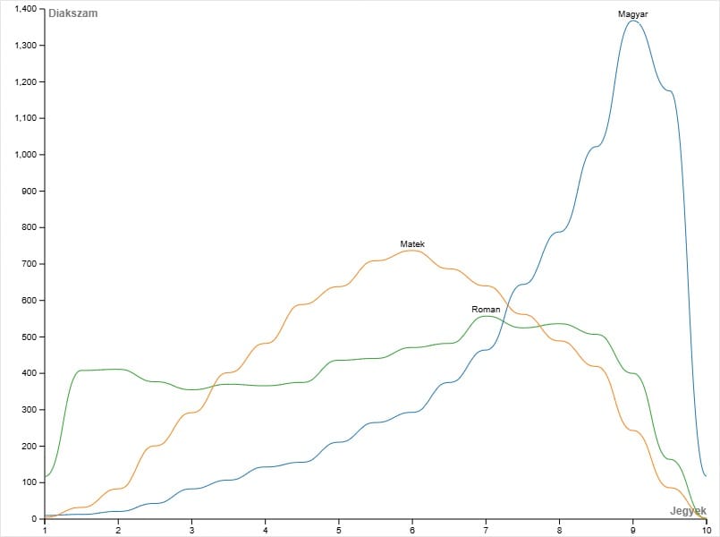 Jegyeloszlás, mindhárom tantárgy esetén: