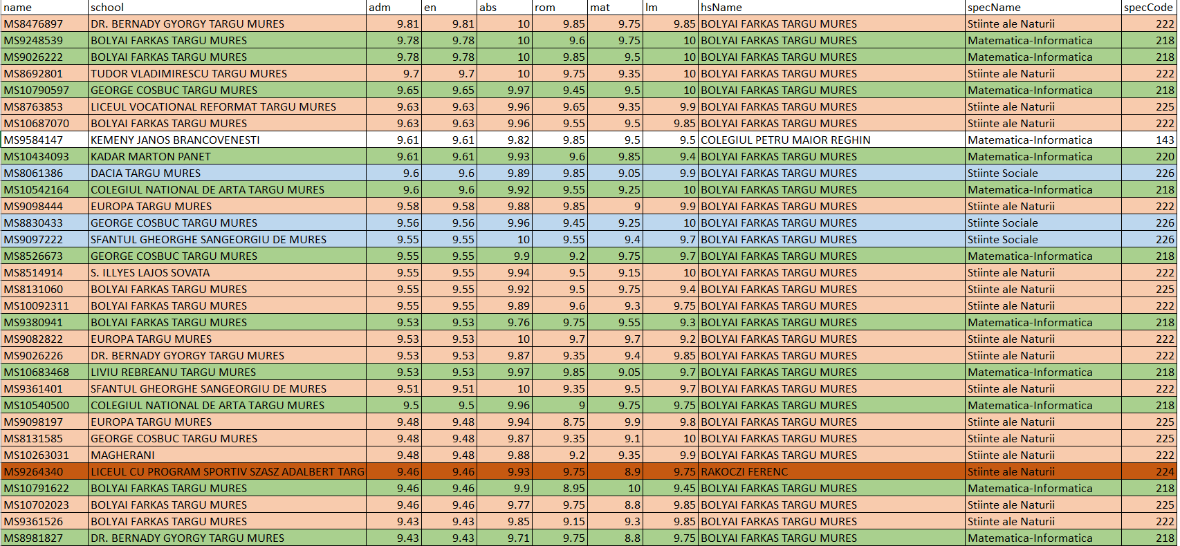 Maros megyében a román diákok elsőként a mindössze 1 éves tapasztalattal rendelkező George Emil Palade líceum Természettudomány és Matematika-Informatika osztályait foglalták el, majd csak utána teltek fel a többéves múlttal rendelkező Papiu és Unirea líceum osztályai. Mindig jól jön a konkurencia!